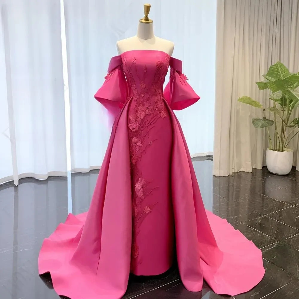 نقدم لك فستان "Amara" ، احتفالًا نابضًا بالأناقة والأسلوب الجريء. يتميز هذا الفستان المذهل بفتحة رقبة مكشوفة الكتفين، ويكمله بشكل جميل أكمام جرسية درامية تضيف لمسة من الرقي العصري. تم تصميم الفستان باللون الوردي الفوشيا المذهل، مما ينضح بالثقة والسحر، وهو مثالي لدخول لا يُنسى.