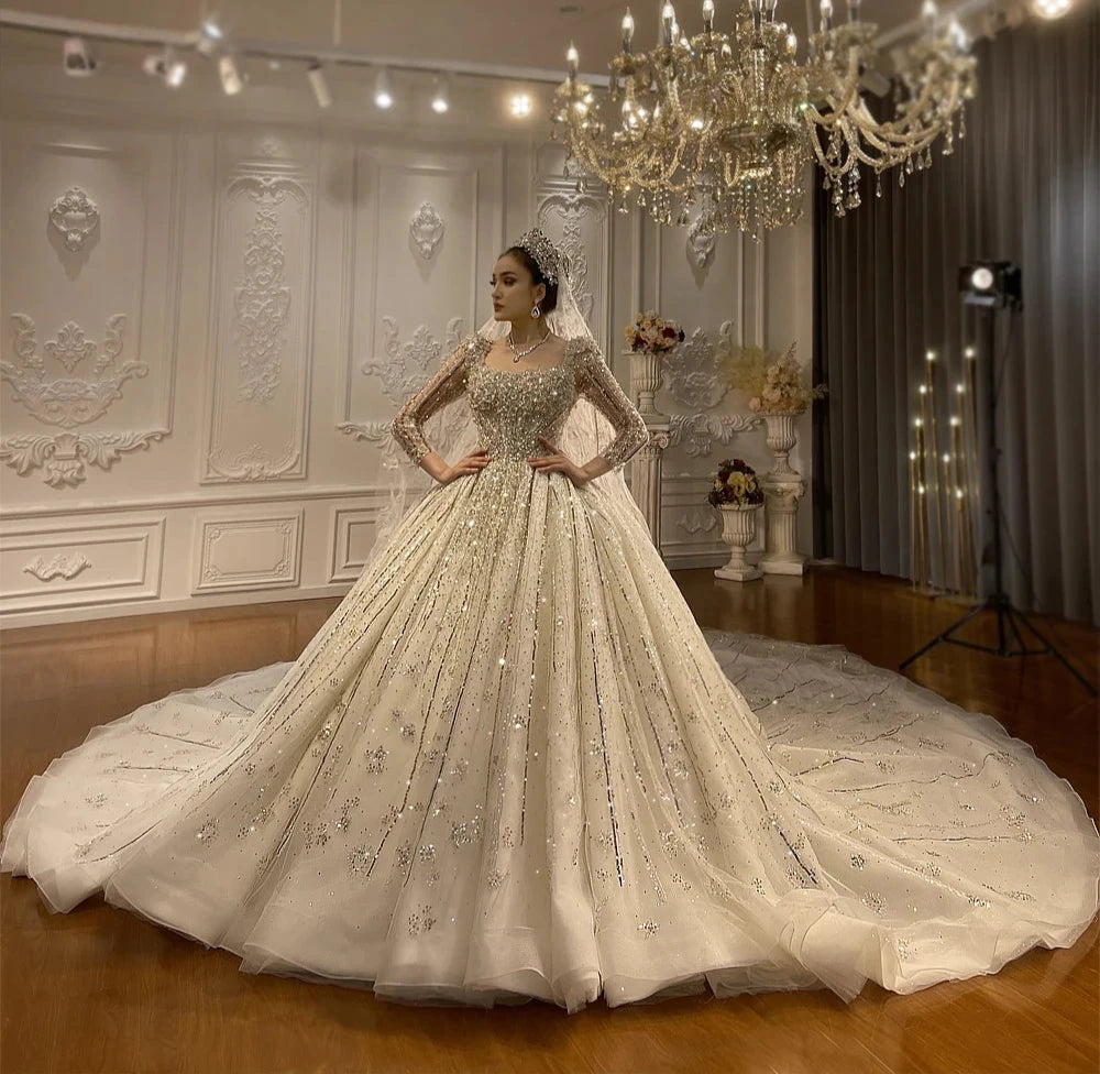 نقدم لك فستان "أناستازيا" ، تحفة فنية من الأناقة المبهرة والروعة الملكية. هذا الفستان الرائع مزين بكريستالات لامعة وخرزات معقدة تتدفق من الصدر إلى التنورة الكاملة، مما يخلق تأثيرًا ساحرًا مرصعًا بالنجوم. تلتقط الزخارف الفاخرة للفستان الضوء بشكل جميل، مما يضمن لك تألقًا مع كل خطوة.
