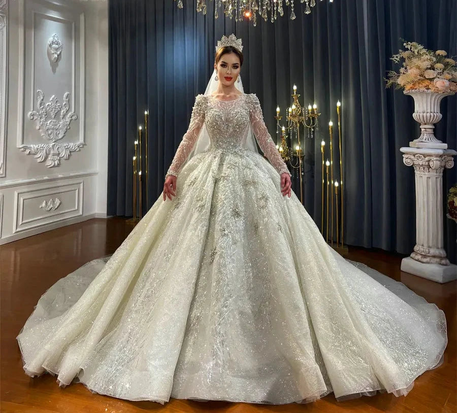 يضفي فستان كاميلا سحرًا ملكيًا ورقيًا. تم تزيين فستان الزفاف المذهل هذا بتطريزات دقيقة وتطريزات من الدانتيل، مما يخلق تأثيرًا لامعًا يلتقط الضوء بشكل جميل. يتميز الجزء العلوي ذو الأكمام الطويلة بتفاصيل معقدة، بينما تتدفق التنورة الكاملة في ذيل مهيب، مما يجعله مثاليًا لدخول رائع. تم تصميم الفستان لجعل أي عروس تشعر وكأنها ملكة في يوم زفافها، مع أناقة خالدة ستظل عزيزة إلى الأبد.
