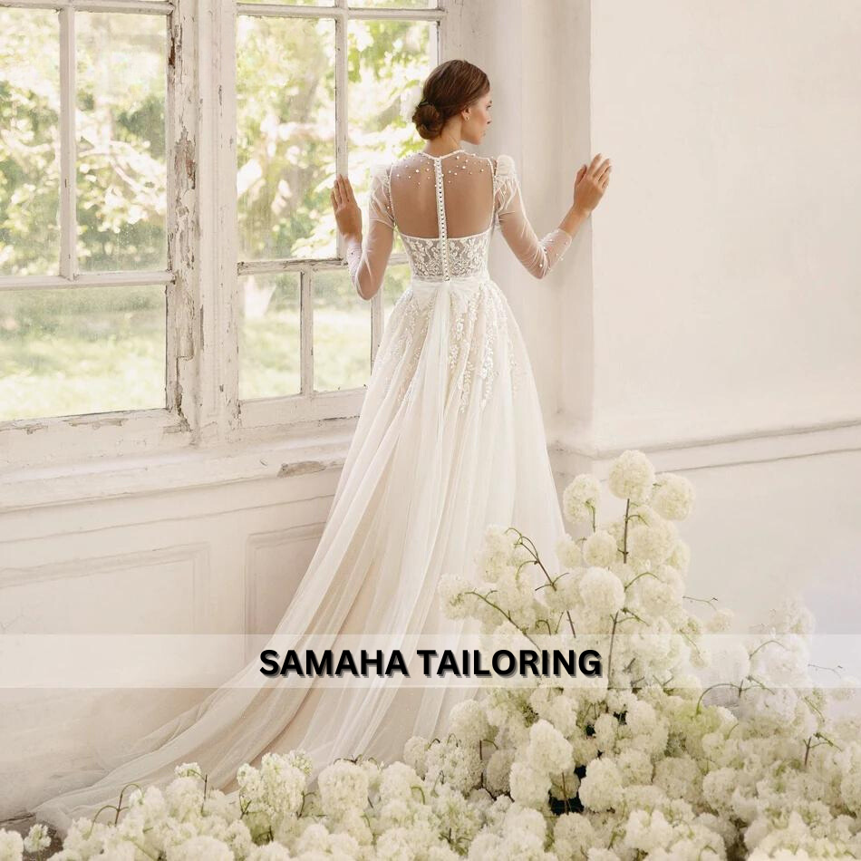 Elevate your wedding day look with our Faith A-Line Wedding Gown. This chic and timeless design features a beaded embroidery jacket to add a touch of elegance. You'll feel like a true bride with the flattering A-line silhouette and intricate details, making unforgettable memories on your special day.