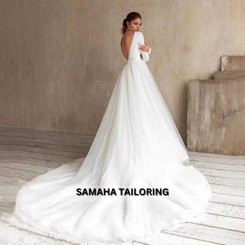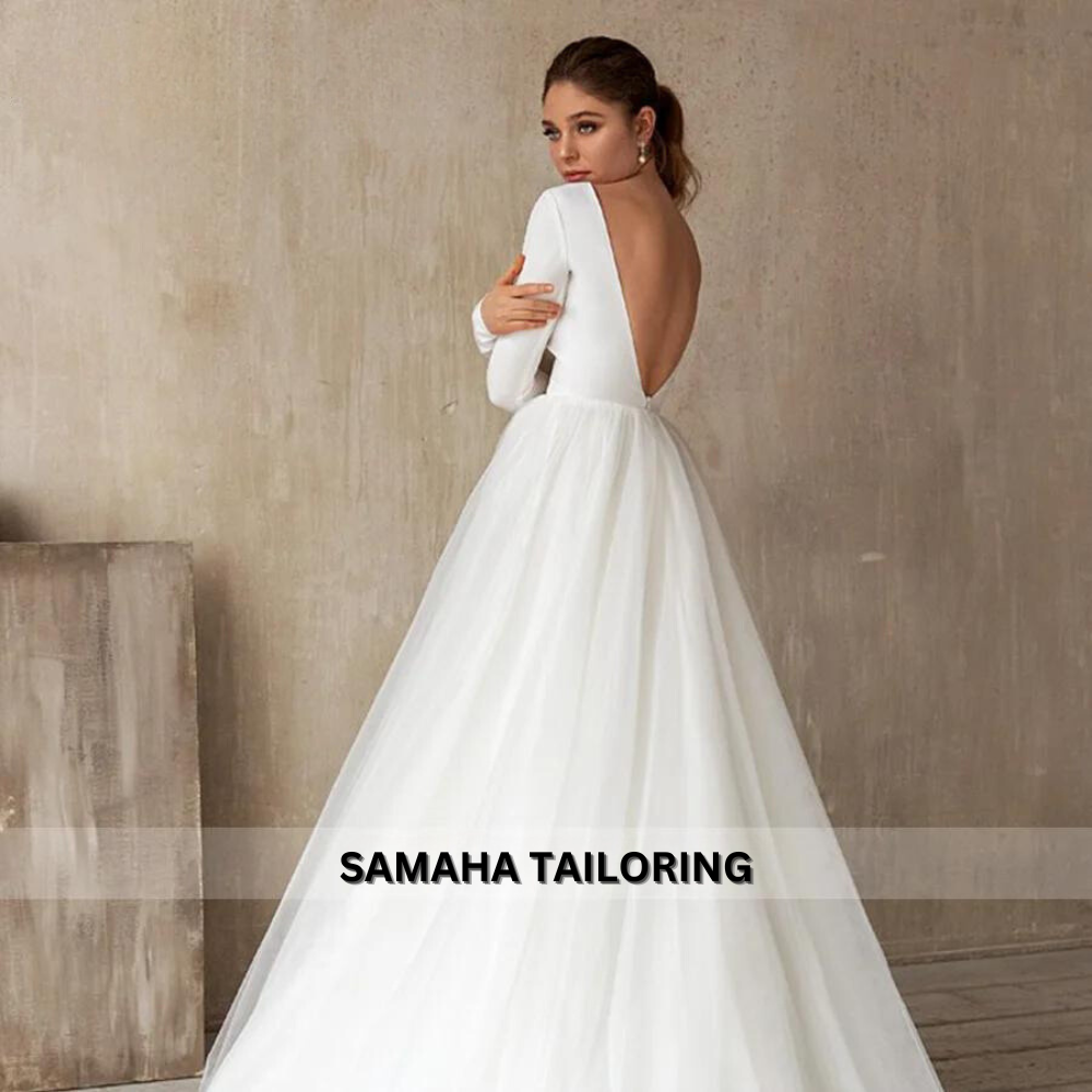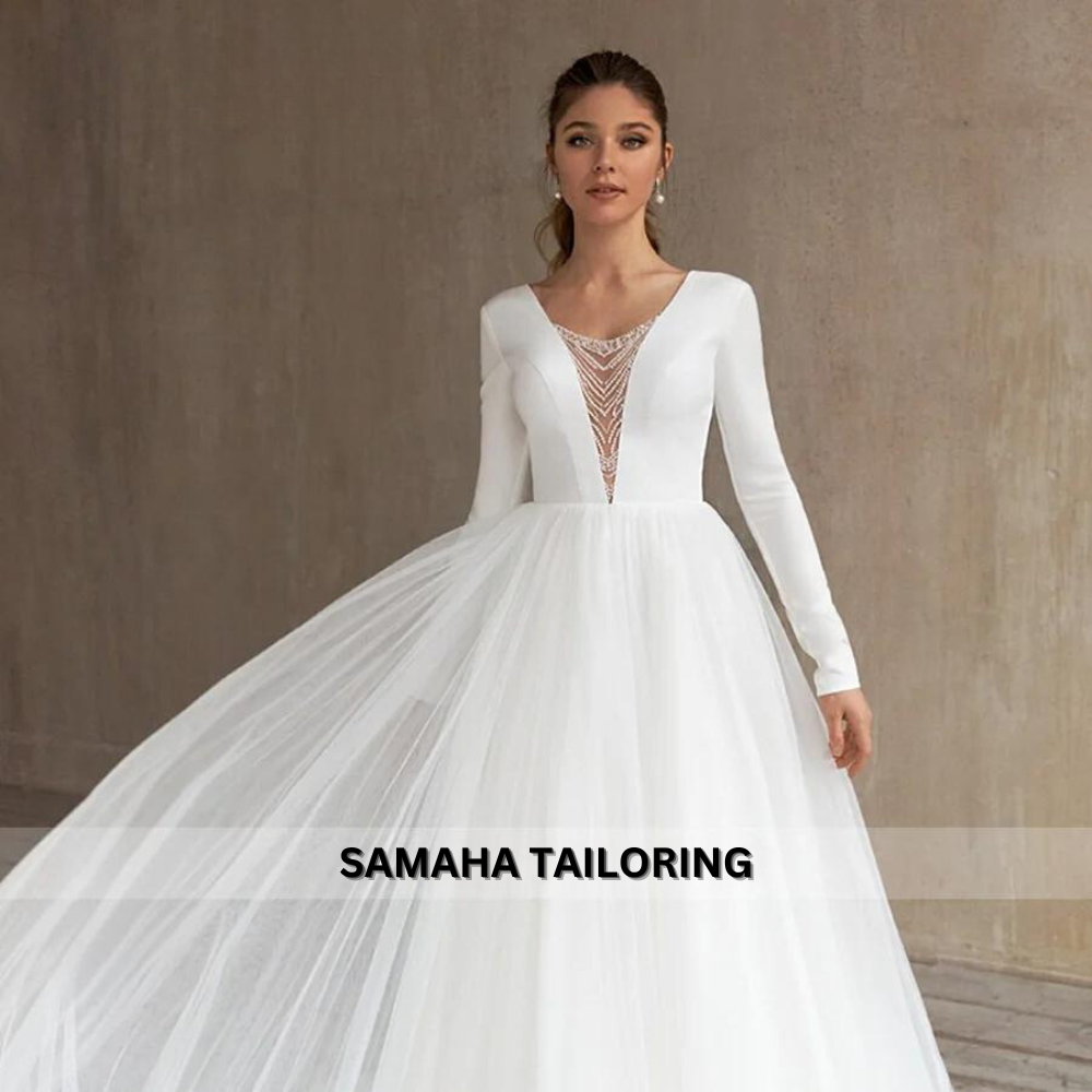 The A-Line Wedding Dress is the epitome of elegance and sophistication. With a deep V-neckline and long sleeves, this dress exudes a timeless charm. The Princess Chapel Train adds a touch of royalty, making the bride feel like a true princess on her special day. Made with luxurious satin, this gown is the perfect choice for any bride looking for a classic and graceful look.