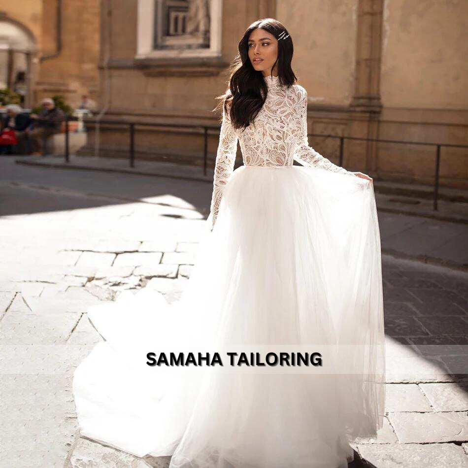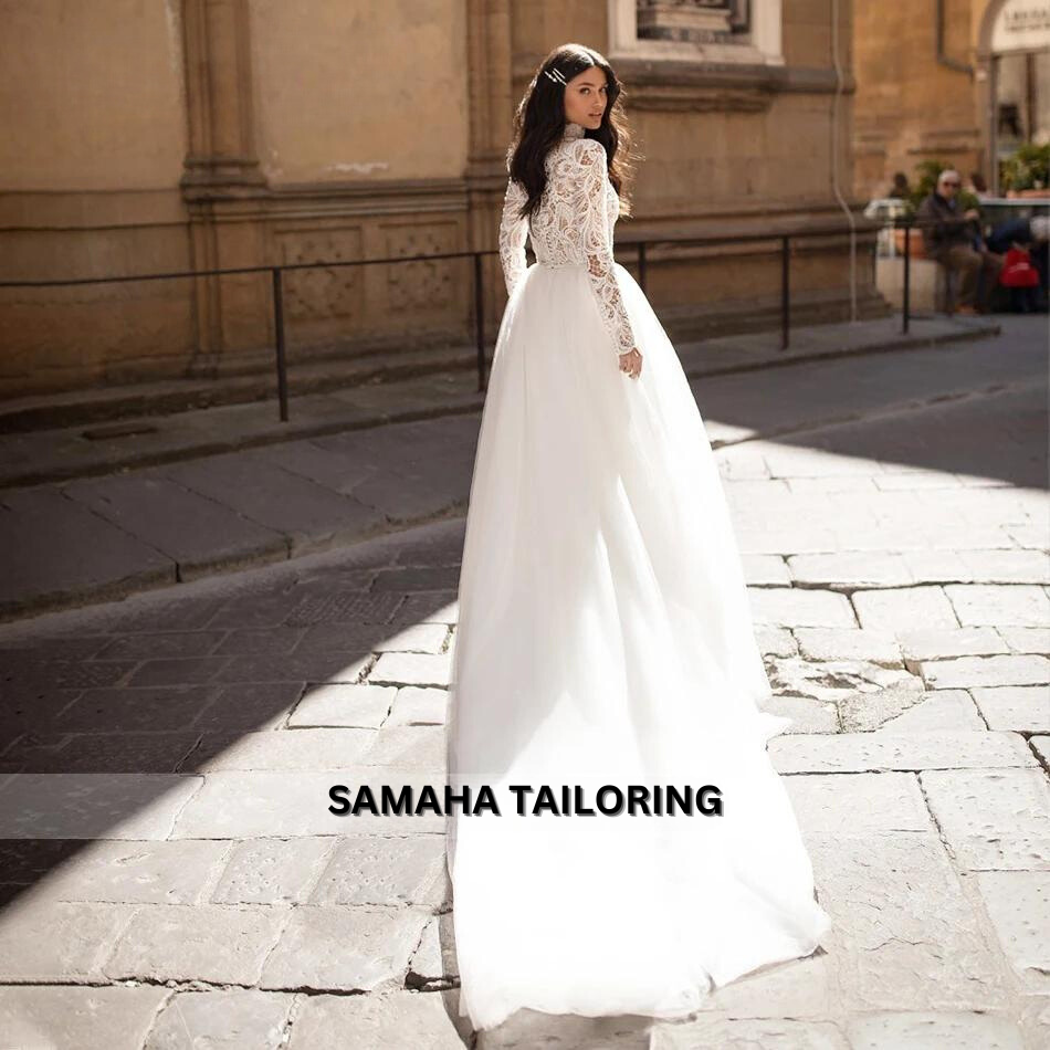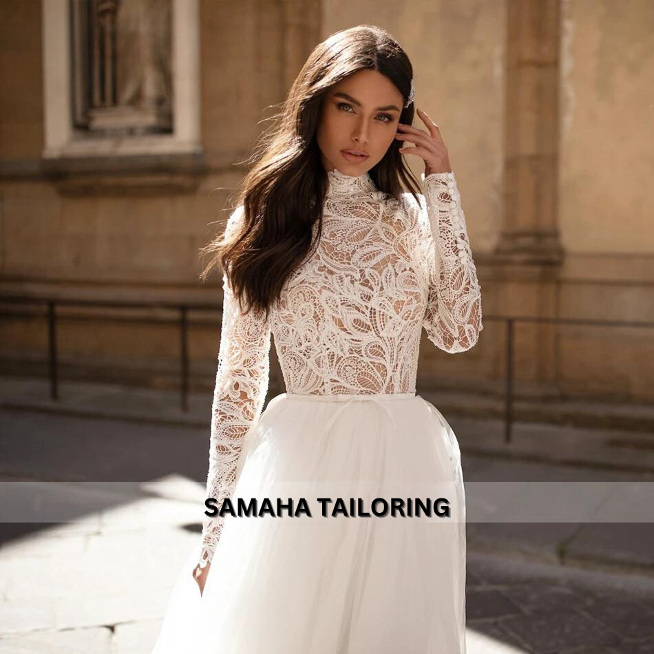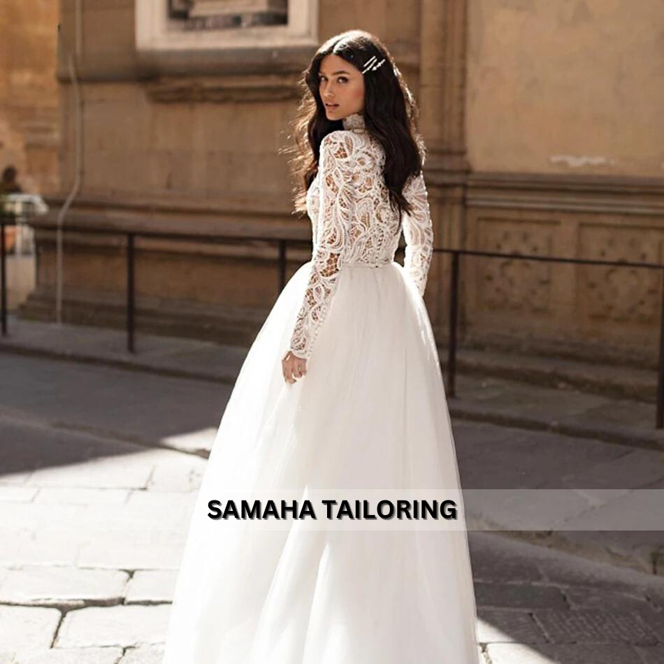 Boldly stand out on your special day with the Moonbeam Bridal Gown. The high neck and long sleeves create an illusion of elegance and adventure, while the lightweight material allows you to freely move and dance. Shine like the moon on the beach with this daring and enchanting gown.