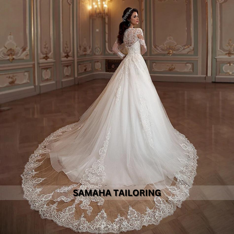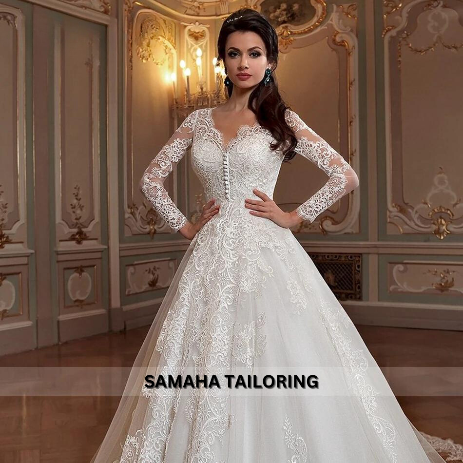 Step into the spotlight with the Royal Wedding Gown. This daring dress features stunning appliques, a flowing A-line silhouette, and a dramatic court train. Turn heads and be the center of attention on your special day with this one-of-a-kind gown.