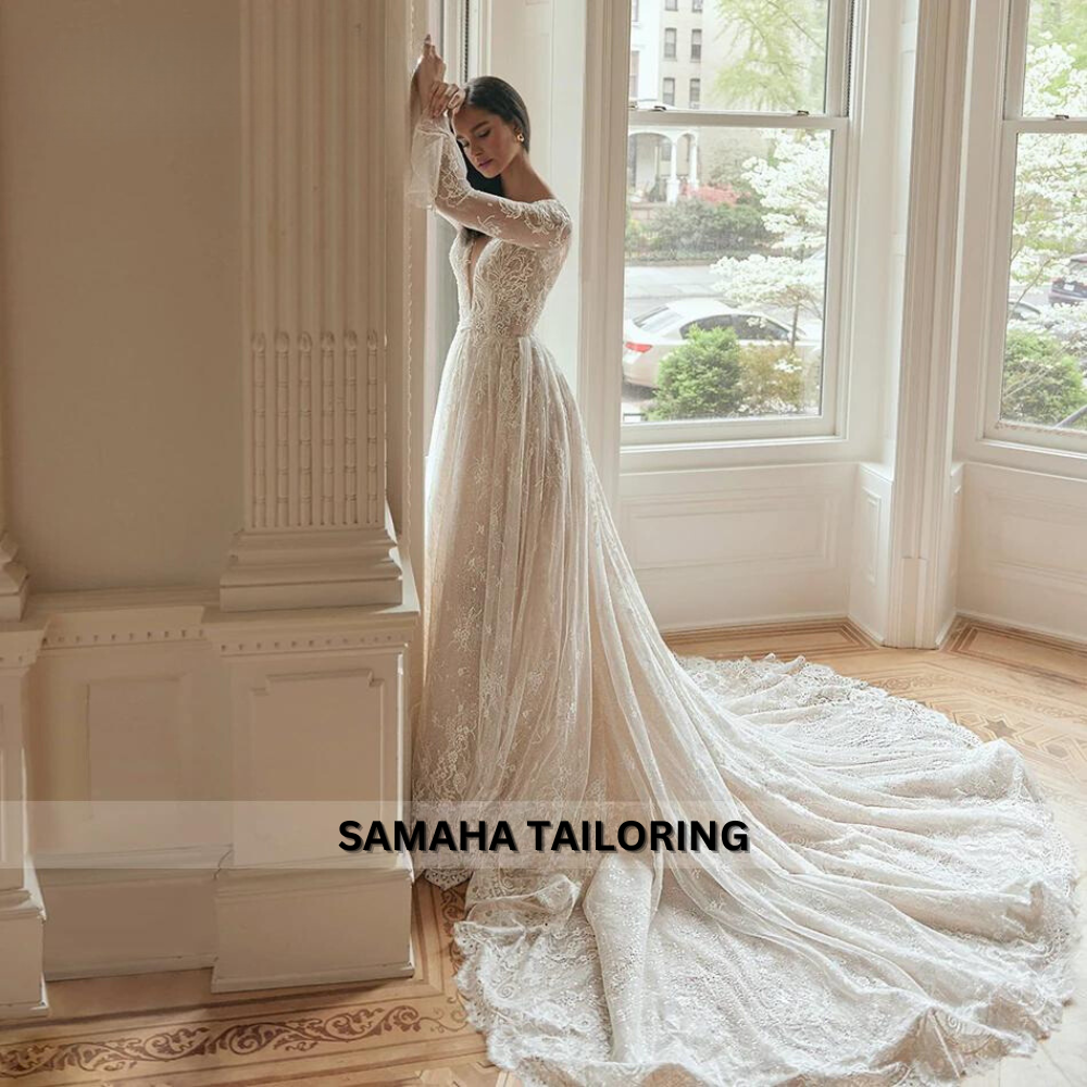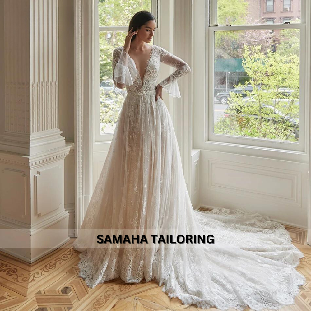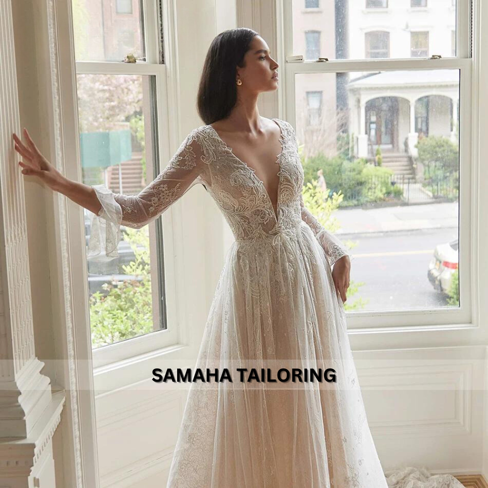Introducing the Ashley Carol Long Sleeve Wedding Dress 2022, a timeless and elegant gown featuring romantic lace, delicate illusion embroidery, and a flattering V-neckline. It's designed to accentuate the figure and create a stunning A-line silhouette, making any bride feel like a real-life princess on her special day. Elevate your bridal look with this exquisite dress.
