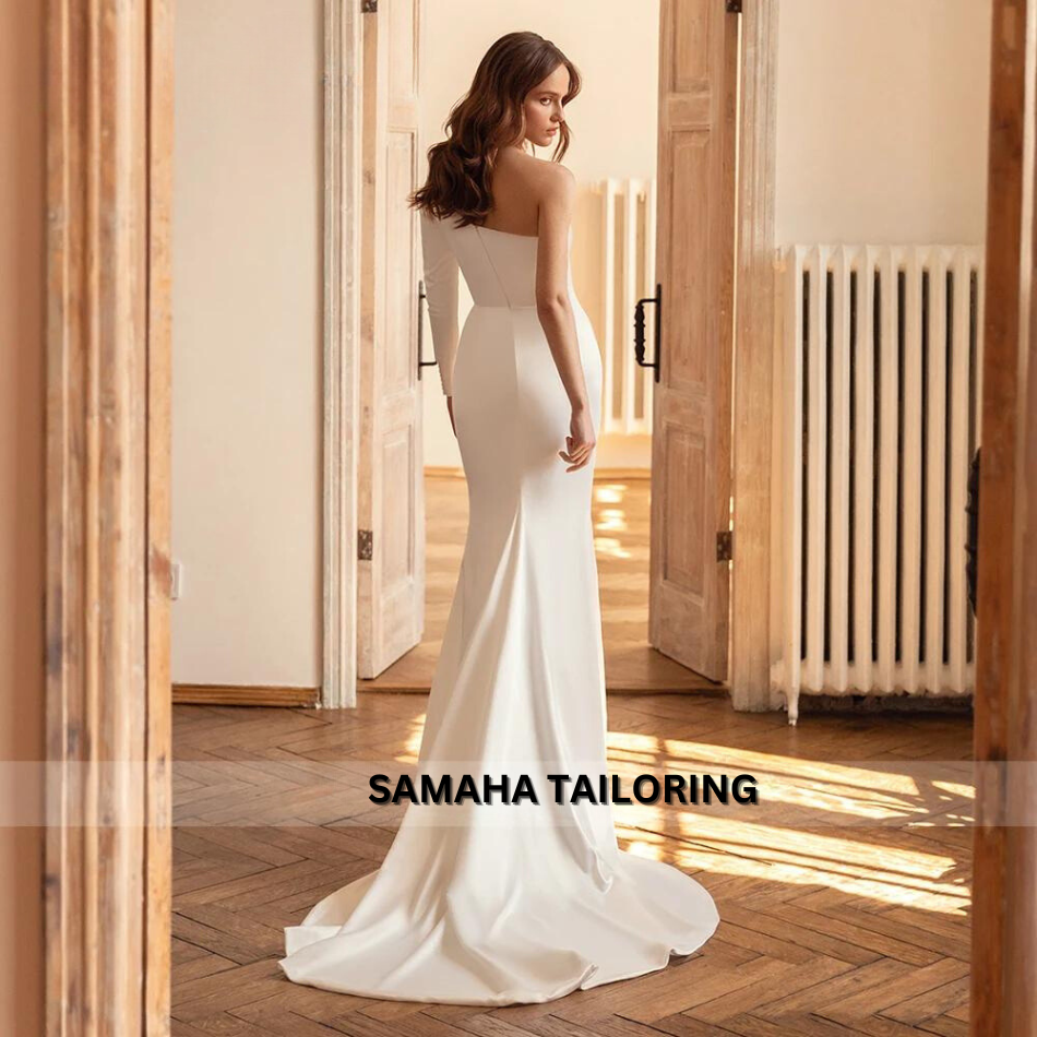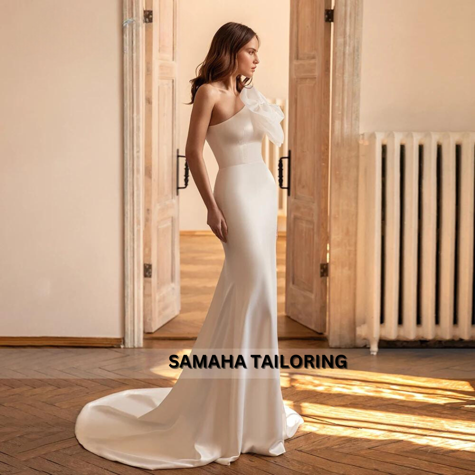 Get ready to make a grand entrance on your big day with the Sarah one shoulder mermaid wedding dress! This stunning dress features elegant 3D flowers and a sweeping brush train, making you the center of attention. Stand out from the crowd and feel like a daring, adventurous bride in this bold and beautiful dress.