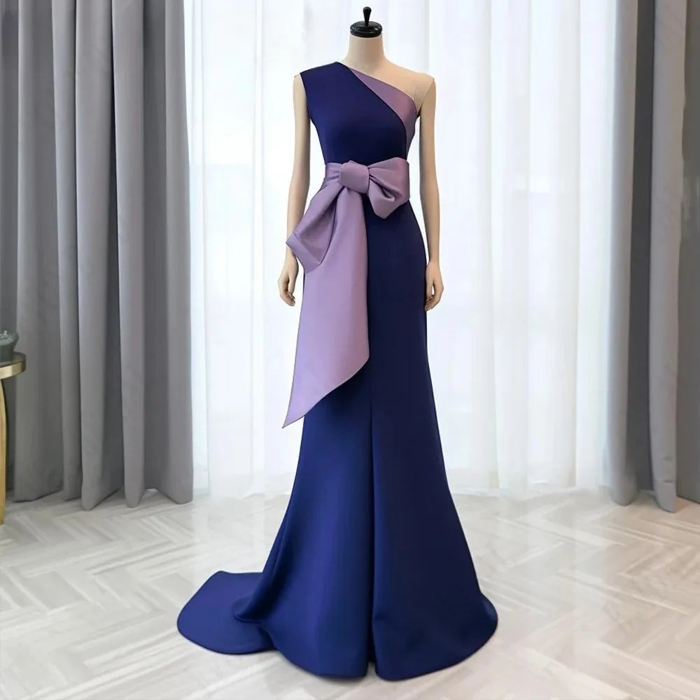 Introducing the "Elena" gown, a chic and sophisticated piece that effortlessly blends contemporary style with elegant simplicity. This stunning dress features an asymmetrical one-shoulder design, crafted from a rich, deep blue fabric that exudes a sense of refined luxury. The sleek silhouette gracefully contours the body, highlighting the natural curves and offering a flattering fit.